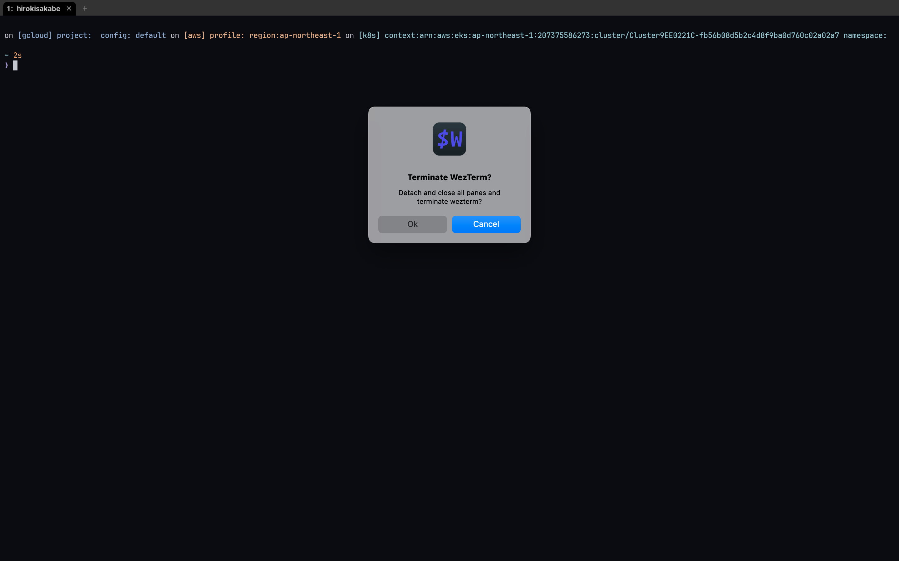 ペイン分割しやすくて便利なのだが、MacOSにてCommand+QでWezTermを終了するときに下記のようなConfirmが表示されて困っている